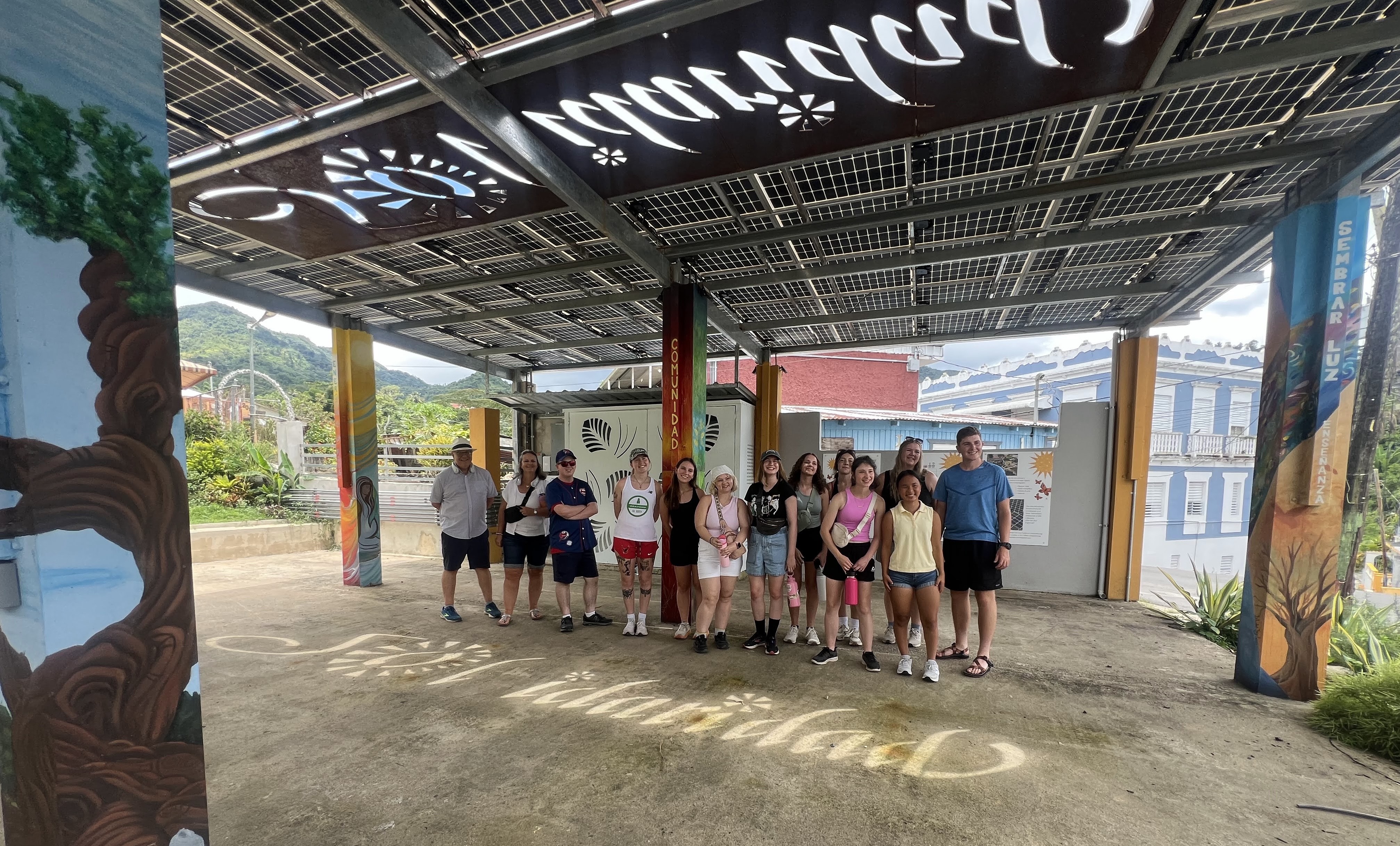 Our next activity was a visit to the educational project at Casa Pueblo. This was such an interesting and educational experience. Here, we learned that the people of Puerto Rico came together to stop deforestation, and Casa Pueblo was the founder of this movement, as well as many others today. The most recent being the solar power movement. Their goal is to try to eliminate electrical power and move to solar power, especially in the case of an emergency. This was especially put into action after Hurricane Maria in 2017, which changed a lot for the people of Puerto Rico. It was amazing to experience the community that was formed through this devastation and just how everyone is so connected. After we toured this project, we were outside standing under the solar panels, and the words Sol Idaridad were displayed, which means solidarity in English. This was super important to this group as it represents the mutual support they share. It was also a good message for me to reflect on how I can collaborate in my own land for the better of the community and country as a whole.